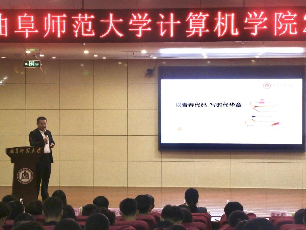 值此学校70周年校庆之际,为帮助2025级新生深化专业认知、明确发展方向、激发学习动力,10月15日,计算机学院举办杰出校友报告会。计算机学院邀请2001级校友刘洪强进行IT行业前沿趋势的专题报告,会议由计算机学院孙旭春主持,计算机学院党委书记张明洁、院长李光顺等500余名师生参加。