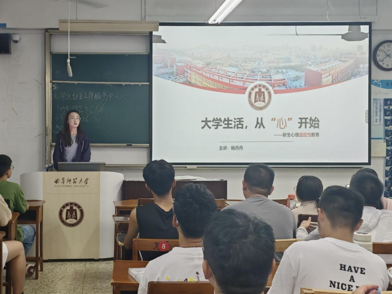 新生辅导员杨丹丹以“大学生活,从心开始”为主题,从新生常见心理问题、心理问题的原因和解决途径三个方面展开讲解。她表示,新生由于人际关系、经济、学习方式等方面的变化容易产生各种心理适应性问题,可以从建立宿舍公约、换位思考、学习心理健康知识、增加求助意识等方面入手,以积极的心态迎接大学生活。