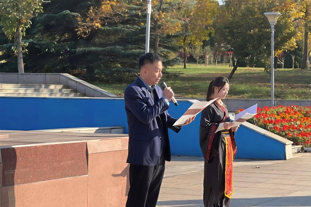 仪式第五项,孙旭春发表致辞,他鼓励学子“以成人礼为起点,做有担当的当代青年”。致辞温情且充满期许,既肯定了学子过往的成长,更寄望他们以成年为新开端,在学识、品德、社会担当上再攀新峰。致辞结束后,引赞官带领全体学子向孔子像行“三揖礼”,为仪式画下圆满句号。