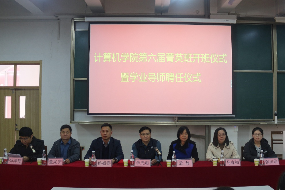 为培育计算机领域基础扎实、潜力突出的后备人才,助力学子夯实专业根基、明确发展方向,11月5日,计算机学院在E204成功举办第六届菁英班开班仪式暨学业导师聘任仪式。计算机学院院长李光顺、党委副书记孙旭春、导师代表孟静、马春梅、董兆安以及2022级优秀学生代表张雨萌出席,辅导员孙泽玮主持。
