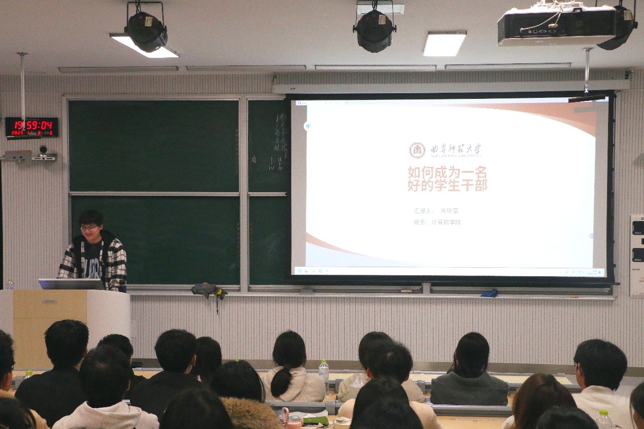为了帮助学生干部更好地锚定方向,提高工作效率,11月8日晚,计算机学院成功开展了学生干部专题培训。本次培训由22级主席团成员周明豪主讲,全体学生干部参加。