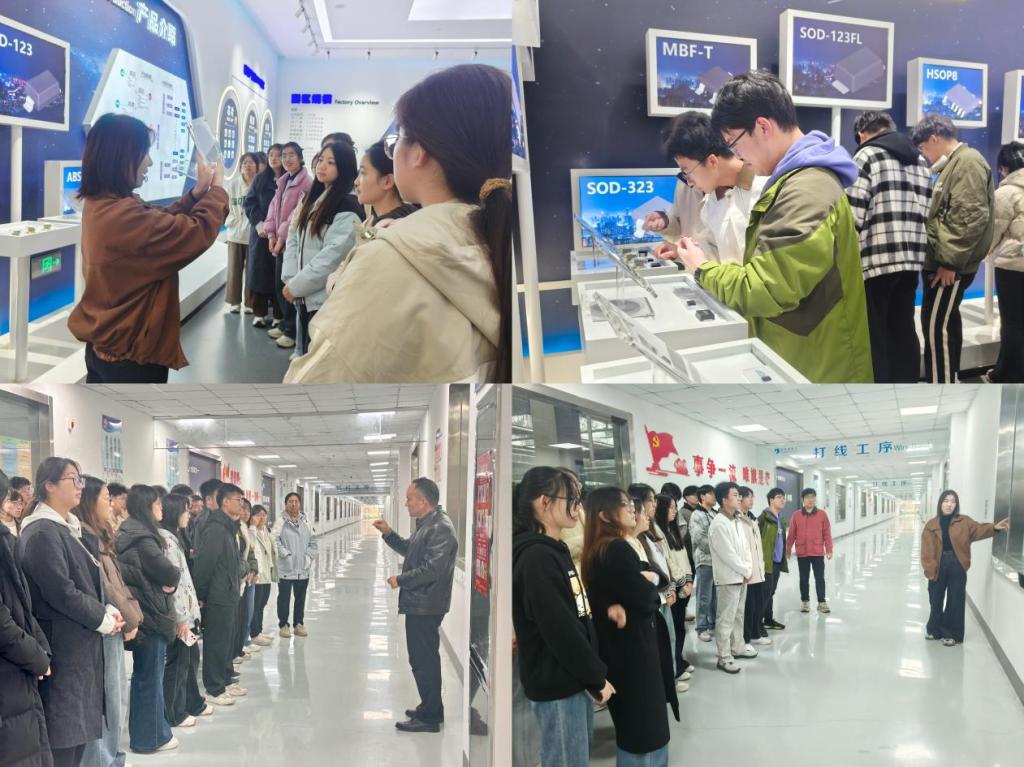 师生们在工作人员的带领下首先参观了企业文化墙,了解企业核心理念、发展历程、经营管理及技术产品等相关内容,随后参观了公司的车间,通过工作人员的讲解,近距离观察了芯片打磨、贴片到合成封装的全流程,并学习了制作芯片的工序。最后,工作人员介绍了企业规模与未来布局,耐心解答了同学们关于培训机制、求职技巧等专业相关问题。