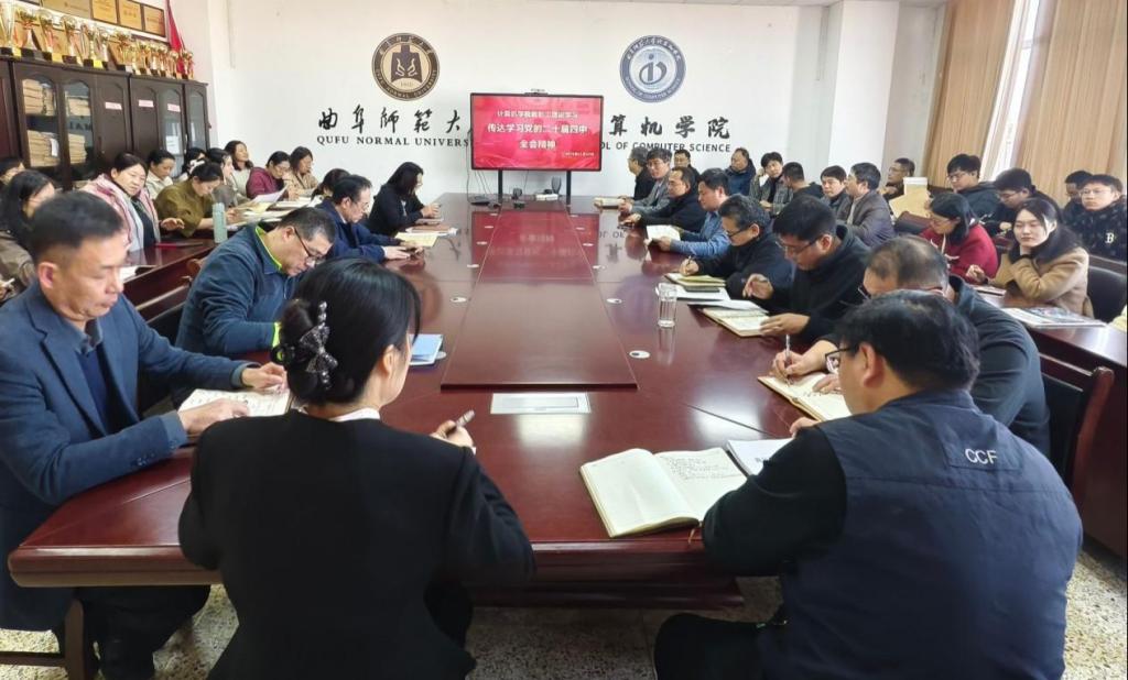 11月12日,计算机学院在C1011会议室举行教职工政治理论学习活动,集体学习党的二十届四中全会精神。本次活动由党委书记张明洁主持,全体教职工参加。